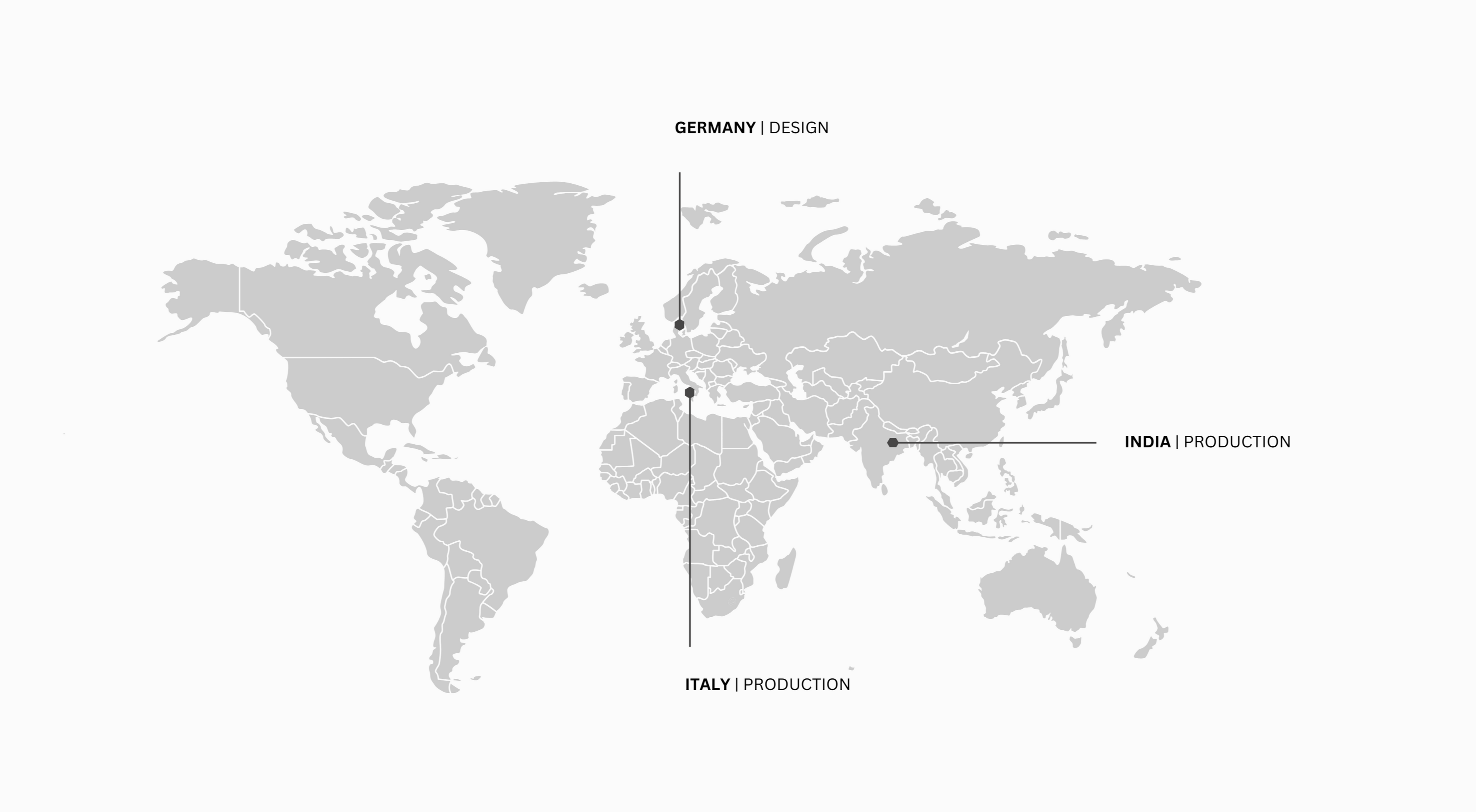 We proudly collaborate with two carefully selected manufacturers — one in Italy and one in India.